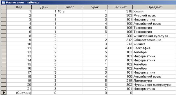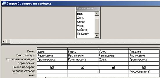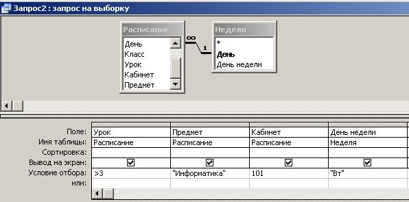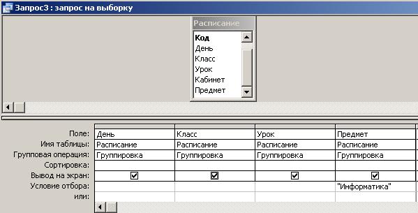 Самостоятельно создайте форму для запроса Расписание за пн, вт, ср для 10 класса.