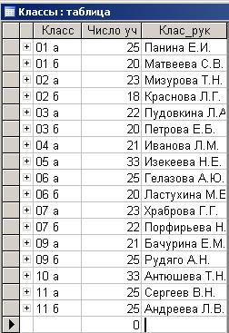 Просмотр таблицы: Меню – Запрос – Запуск.