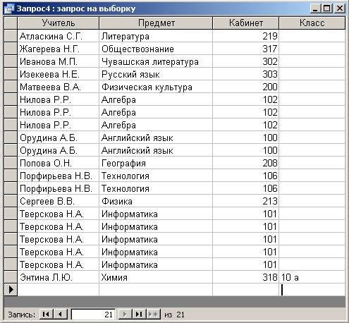 • Сохраните отчет с именем «Учителя». Закройте отчет