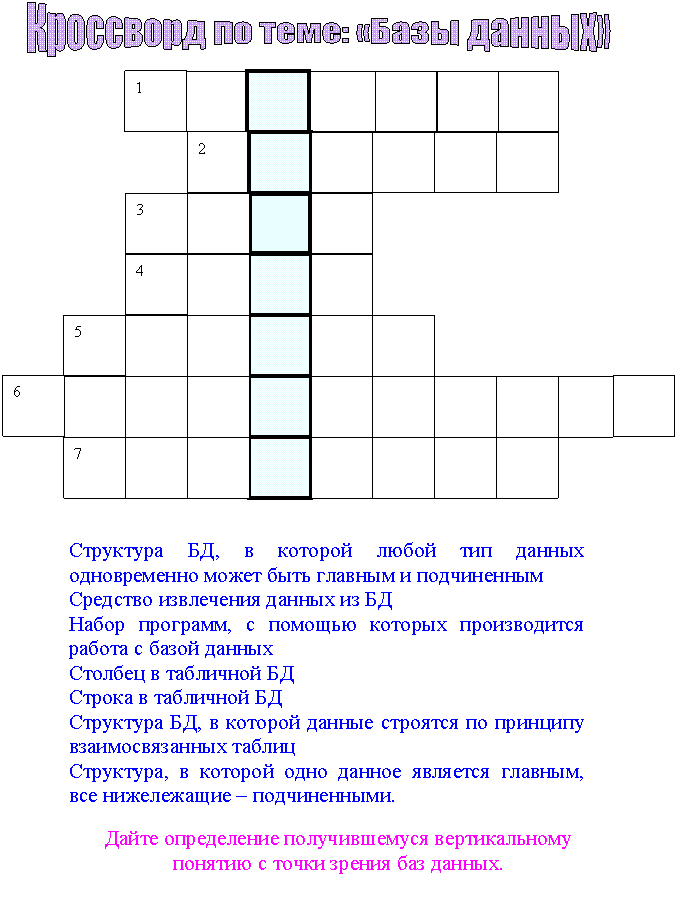 Итоговый тест по БД. Давайте, ребята, разгадаем кроссворд: