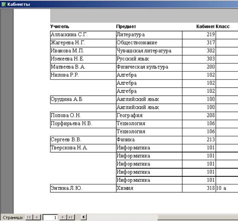 • В окне БД щелкните по кнопке Просмотр (или откройте отчет). Появится документ в том виде, в котором он может быть распечатан.
