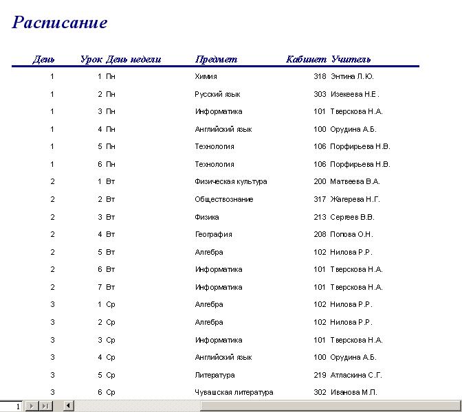 Отчет «Расписание»