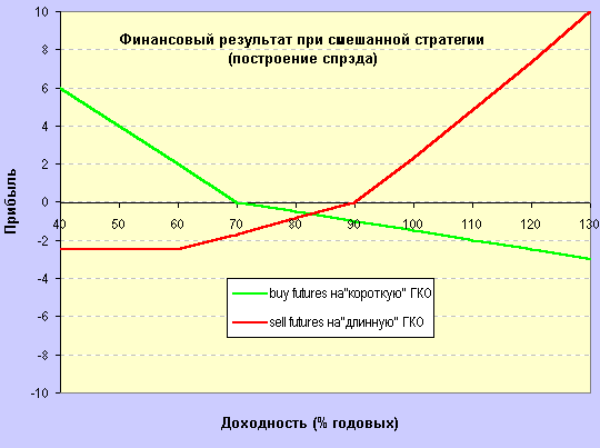 Так, при ожидании негативных событий, связанных с выплатами по облигациям, трейдеры строят спрэд, покупая фьючерсы на «короткие» облигации и одновременно продавая фьючерсы на «длинные» облигации. В свою очередь инвесторы, опасаясь прекращения выплат по облигациям, стремятся продать имеющиеся у них «длинные» облигации, требуя всё большую премию по доходности на вновь размещаемые облигации. При этом на уходящем рынке денежные средства, получаемые от погашения и продажи облигаций, вкладываются преимущественно в краткосрочные бумаги. Всё это ведет к тому, что при общерыночном росте доходности доходность «длинных» облигаций может вырасти значительно сильнее, чем по «коротким»; а в случае падения процентных ставок доходность «коротких» облигаций падает значительно сильнее, чем «длинных». И только когда доходности «длинных» и «коротких» облигаций начинают двигаться навстречу друг другу, возникает чистый убыток по фьючерсной позиции.