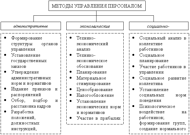 Наука и практика выработали три группы методов управления персоналом: административные, экономические и социально-психологические.