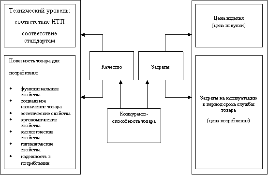 Конкурентоспособность товара (КС) – решающий фактор его коммерческого успеха на развитом конкурентном рынке. Это многоаспектное понятие, означающее соответствие товара условиями рынка, конкретным требованиям потребителей не только по своим качественным, техническим, экономическим, эстетическим характеристикам, но и по коммерческим и иным условиям его реализации ( цена, сроки поставки, каналы сбыта, сервис, реклама). Более того, важной составной частью конкурентоспособности товара является уровень затрат потребителя за время его эксплуатации. Любой товар, находящийся на рынке, фактически проходит там проверку на степень удовлетворения общественных потребностей: каждый покупатель приобретает тот товар, который максимально удовлетворяет его личные потребности, а вся совокупность покупателей – тот товар, который наиболее полно соответствует общественным потребностям. Поэтому КС товара можно определить только сравнивая товары конкурентов между собой. КС – понятие относительное, четко привязанное к конкретному рынку и времени продажи. Отправной момент оценки конкурентоспособности любого товара – формирование цели исследования. Если необходимо определить положение данного товара в ряду аналогичных, то достаточно провести их прямое сравнение по главным параметрам.