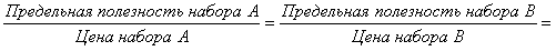 То есть, потребляя сразу много товаров и услуг, каждый потребитель приобретает для себя такой их набор, где предельные полезности каждого товара и услуги равны или приносят потребителю одинаковое удовлетворение.