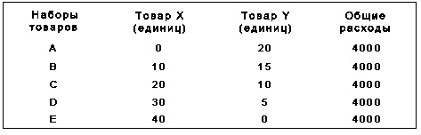 Рассмотрим, например, домохозяйство Ивановых, делающих выбор при покупке набора, состоящего из двух замещающих друг друга товаров. При этом замещение понимается как возможность сочетать удовлетворение разных потребностей (питание и одежда), либо как возможность удовлетворить с помощью каждого из рассматриваемых товаров одни и те же потребности (два продукта питания). Принимая решение о составе приобретаемого набора этих товаров, семья анализирует возможные варианты их сочетания с учетом наличия определенной суммы денег. При этом они учитывают предпочтения и руководствуются действием закона убывающей предельной полезности.
