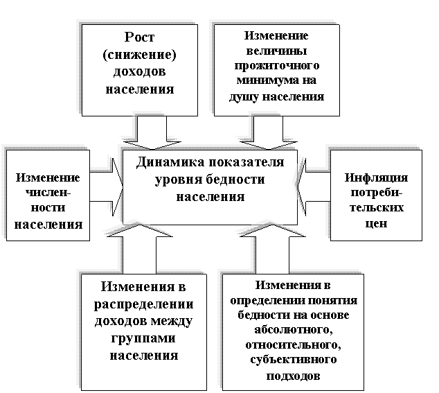 Рис. 1. Схема влияния факторов на динамику показателя уровня бедности населения.