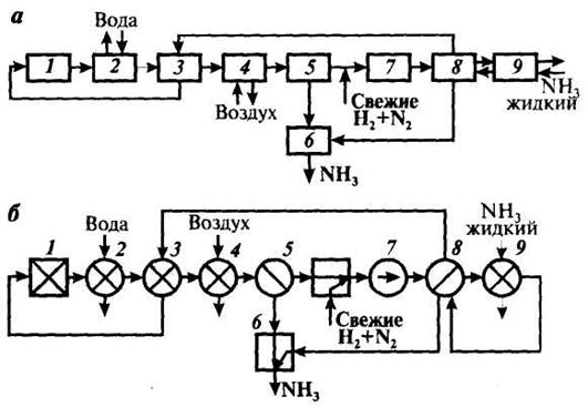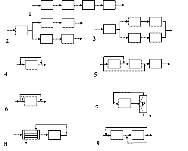 Позиции 2,3. Подготовленное сырье проходит ряд превращений, в результате чего образуется необходимый продукт (поз.2). Возможно, необходимо выделение основного продукта из образовавшейся смеси, очищение его от примесей (поз.3). Элементы 2,3 образуют по существу основное химическое производство.