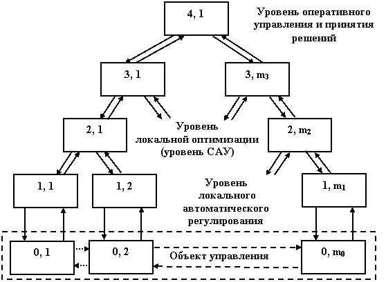 Система управления состоит из лица, принимающего решение (ЛПР), исполнителей управления (ИУ), информационно-управляющих средств (ИУС) и осуществляет управление непосредственно технологическим оборудованием и движением материальных потоков производства.