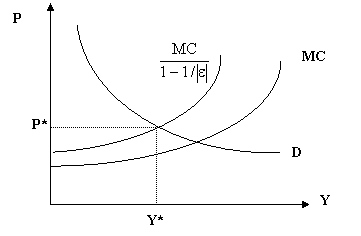 Если монополист решает увеличить выпуск на ãY, это оказывает на прибыль двоякое воздействие. Во-первых, он продает больший выпуск и получает от этого доход в размере P*ãY. Во-вторых, монополист сбивает цену на величину ãP и выручает эту меньшую цену за весь проданный им объем выпуска. Следовательно, общее воздействие, оказываемое на доход изменением выпуска на ãY, составит: