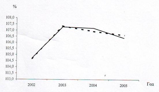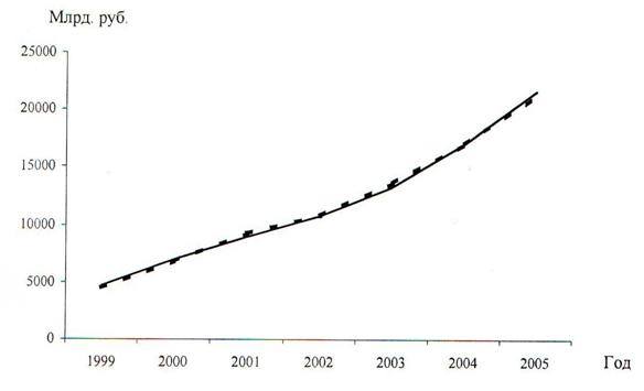 Разработка механизма для оперативных аналитических и прогнозных расчетов динамики обобщающего показателя развития экономики - ВВП - потребовала проведения ретроспективного анализа в целях определения минимального набора факторов, с высокой степенью достоверности отражающих динамику анализируемого показателя. Основными факторами, характеризующими объем используемого ВВП, являются денежные доходы населения (ДДН) и инвестиции в основный капитал. С 2000 г. ДДН стабильно превышали 60 % общего объема ВВП, а инвестиции в основной капитал составляли 16 %, т. е. в сумме доля этих показателей в последние пять лет приближалась к 80 % объема ВВП. Необходимо отметить, что объем инвестиций в последние четыре года был на уровне примерно 16 % ВВП, что свидетельствует об отсутствии долгосрочных целевых программ по структурной перестройке экономики и ориентации на получение краткосрочного инвестиционного эффекта. В развитых странах разрабатываются долгосрочные инвестиционные программы, нацеленные на обеспечение приоритетов национальных экономик в отдельных сферах деятельности. Общий объем инвестиций в основной капитал в таких странах составляет не менее 20 % ВВП и ориентирован на своевременную модернизацию производственных комплексов и поддержание конкурентоспособности как отдельных отраслей, так и страны в целом.