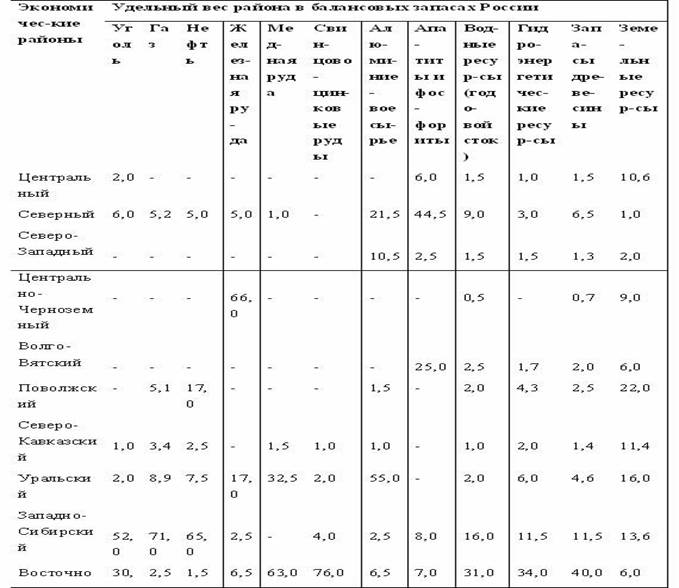 Сырьевые ресурсы базовых отраслей составляют значительную долю мировых. Например, нефтяные запасы Западной Сибири сопоставимы с потенциалом нефтедобывающих стран Ближнего Востока, лесные ресурсы превосходят имеющиеся у Канады, США, Финляндии, Швеции и Норвегии, вместе взятых. Россия полностью обеспечена энергоносителями и в значительных масштабах их экспортирует.