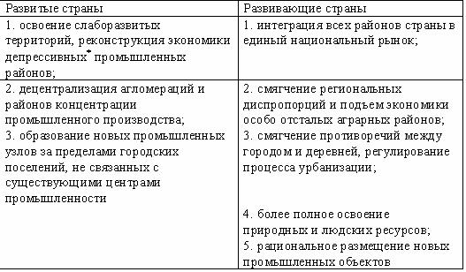 В таблице 1 представлены направления региональной политики в развитых и развивающихся стран.