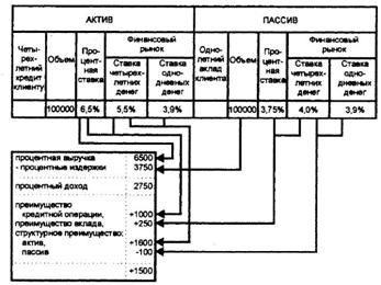 1)разбиение брутто-маржи процентных операций на общебанковские частичные маржи (например, процентные ставки по активам и пассивам) и далее выделение доли процентов, приходящихся на клиентские и неклиентские операции;
