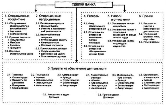 Для кредитного института наибольший интерес представляют производственные издержки, связанные с осуществлением клиентских операций. Их удельный вес в общем объеме издержек банка существенно больше, чем издержек, обусловленных операциями на финансовом рынке. Структура сделок банка представлена рис. 3.10.
