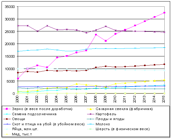 Таблица 7 - Производство основных видов сельскохозяйственной продукции малых формах хозяйствования РФ