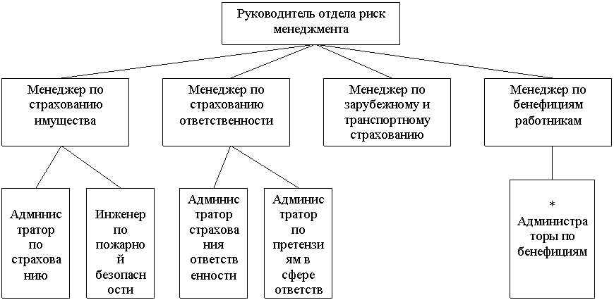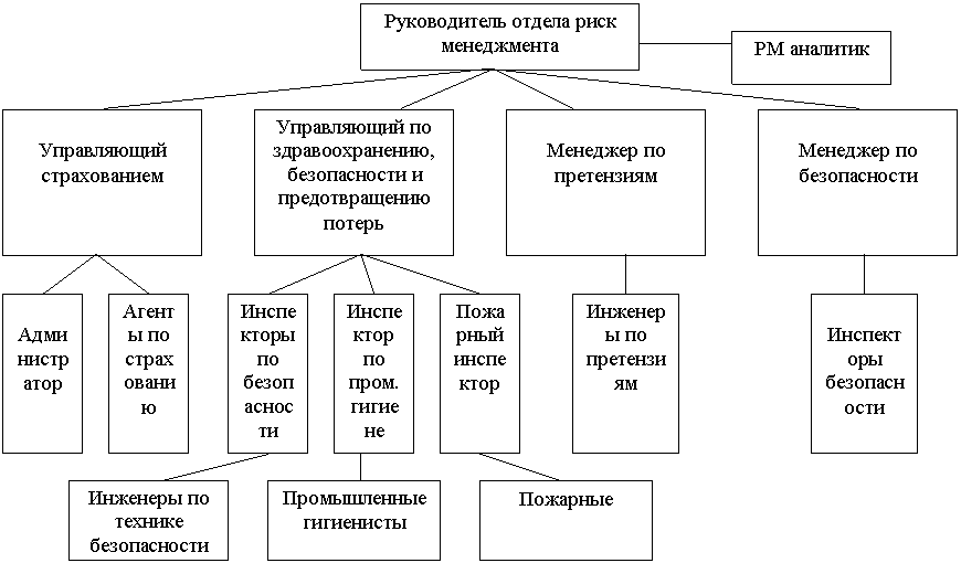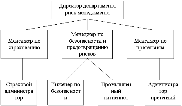 На рисунках 2.4 – 2.7 показаны типовые организационно-структурные схемы служб риск-менеджмента, которые применяются на предприятиях США и Европы.1