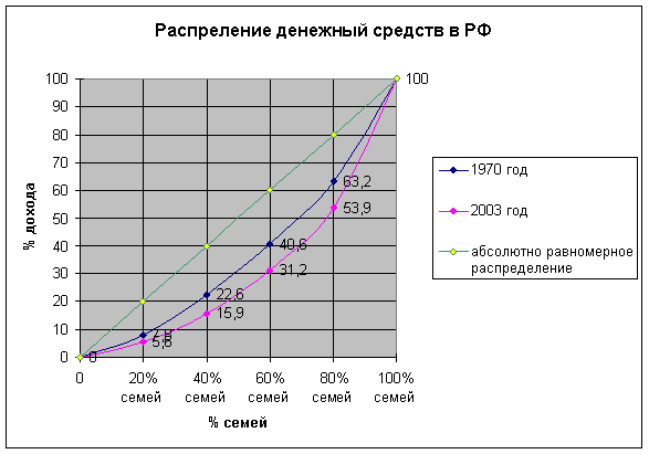 2. Постройте кривые Лоренца по данным 1970 года и 2003 года. Сравните и. Объясните различие.