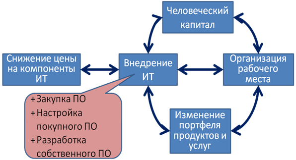 В схематичном виде взаимодействие инвестиций в ИТ и инвестиций в комплементарные активы представлено на Рис. 1.