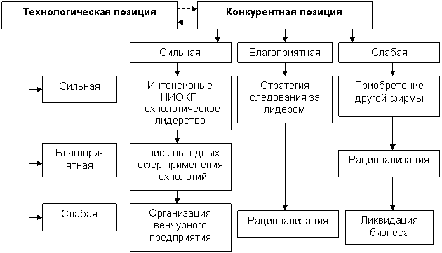 Для диагностики технологической позиции предприятия может быть использована методика выбора инновационной стратегии по технологическим факторам И. Ансоффа. Он выделяет шесть основных технологических факторов, влияющих на инновационную стратегию организации: