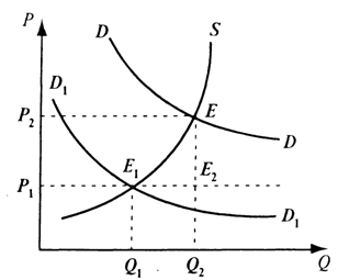 При этом точка рыночного равновесия перемещается на более высокий уровень.