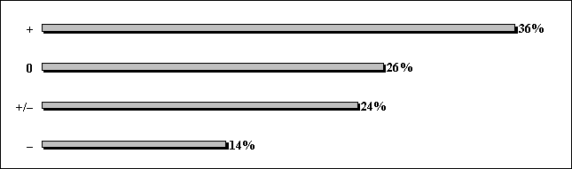 I. Позитивные оценки преобладают. Они встречаются в большинстве печатных изданий, как государственных, так и коммерческих. Их спектр очень широк: от «Известий», «Независимой газеты», «Комсомольской правды» до «Акции» и «Московского комсомольца». "Известия", например, создает наиболее красивый романтический образ Университета, "МК" пишет о нем задорным студенческим языком. В "Независимой газете" тему МГУ освещают одни и те же авторы и одинаково позитивно. Последний пример иллюстрирует благотворное влияние наработанных связей представителей вуза с журналистами.