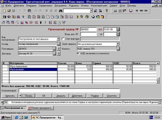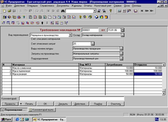 3. Технология ведения учета материалов с использованием программы «1С-Бухгалтерия»