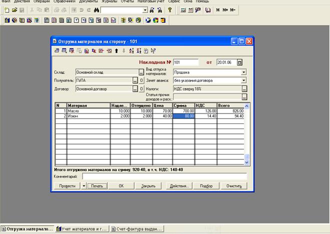 При продаже материалов организация должна определить сумму, подлежащую оплате покупателем и выписать на эту сумму счет-фактуру для оплаты. Продавец учитывает по дебету счета 62 в корреспонденции с кредитом счета 91 следующую сумму, подлежащую оплате покупателем: стоимость отпущенных материалов по договорным ценам и НДС.