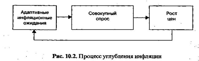 Инфляция считается опасной болезнью рыночной экономики не только потому, что она быстро расширяет поле своей разрушительной деятельности и самоуглубляется. Ее очень трудно устранить, даже если исчезают вызвавшие ее причины. Это связано с инертностью психологического настроя населения, который сформировался ранее. Пережившие инфляцию покупатели еще долго совершают покупки "на всякий случай". Адаптивные инфляционные ожидания сдерживают выход страны из инфляционных тисков, так как они вызывают ажиотажный спрос, а он поднимает планку товарных цен.