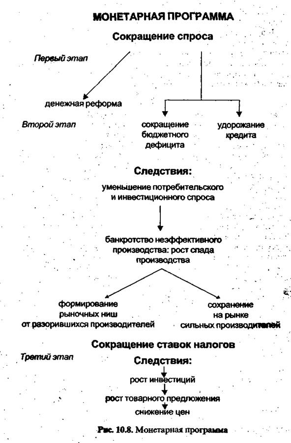 На первых двух этапах используются рычаги, снижающие совокупный спрос, на третьем—рычаги, стимулирующие рост товарной массы.