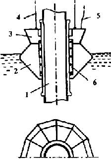 Трубы Лонгарда своей большой массой придерживают мешки нижнего основного слоя и случаях повреждения этих мешков являются преградами («бунами»), препятствующими Уносу материала из секции. Следует отметить, что для Рассматриваемого типа крепления откосов требуется много синтетических материалов большой прочности. Крепления откосов с трубами Лонгарда не получили распространения.