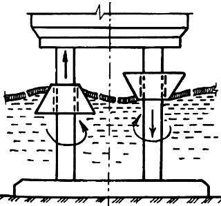 В искусственных островах ледовая нагрузка воспринимается массой материала островов. К группе искусственных островов относятся также ледяные острова и платформы. Значительная часть сооружений, опирающихся на морское дно, являются передвижными, т. е. могут сниматься с мест работы и перемещаться на плаву на другие места эксплуатации. Ледовая нагрузка воспринимается корпусами и другими конструкциями этих сооружений. В плавучих сооружениях нагрузки от льда воздействуют непосредственно на плавучие корпуса таких сооружений, а далее воспринимаются якорными системами. Большинство шельфовых сооружений опираются на морское дно и являются гравитационными. Такие сооружения имеют значительные площади подошв для опирания на морское дно и сравнительно малые сечения в зонах воздействия льда.