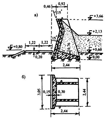 Опытный участок был разделен на секции уложенными в радиальных направлениях по откосу сдвоенными трубами Лонгарда с интервалами, определяемыми в плане углами 30°.