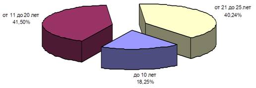 Транспортировка газа от производителей газа к пунктам его сдачи производится по магистральным газопроводам: МГ «Нижневартовский ГПЗ - Парабель – Кузбасс» транспортирует до 11 млрд. м3 в год и МГ "СРТО - Омск - Новосибирск - Кузбасс", по которому транспортируется до 5,0 млрд. м3 газа с газовых месторождений. Большая часть газопроводов находится в эксплуатации от 20 до 25 лет и более (рис.1). В связи с этим они имеют значительные коррозионные повреждения, и повышение рабочего давления до проектного уровня может привести к разрывам газопроводов.