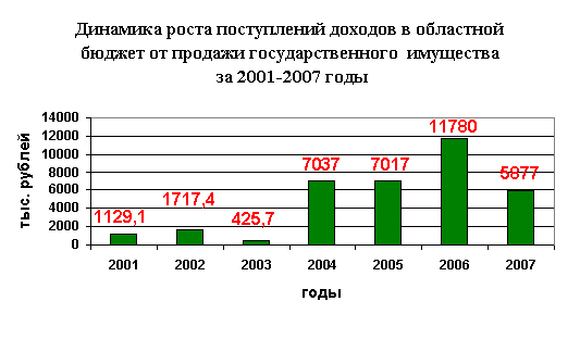 Всего по состоянию на 31 декабря 2007 года от продажи государственного имущества в областной бюджет поступили доходы в размере 5877 тыс. рублей.