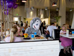Эксклюзивный интерьер, выполненный в стиле пиратского корабля. Кафе рассчитано на 80 мест и находится на первом этаже отеля. Фирменные блюда: блины и свежеприготовленная пицца, а также всевозможные сладости.