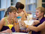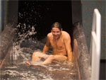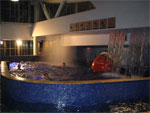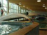 В водном центре Вас ждут бассейн (25 м) с 6-ю дорожками, волновой бассейн с двумя разными «ливнями», плавательная дорожка против течения, гидромассаж и водные струи, бассейн под открытым небом (с подогревом), водная горка (труба с разными видами подсветки). Для детей есть два бассейна глубиной 90 см и 35 см, водная горка. На втором этаже водного центра расположен бар с прохладительными напитками и экзотическими коктейлями (оплачивать напитки можно с помощью ленточки на запястье).