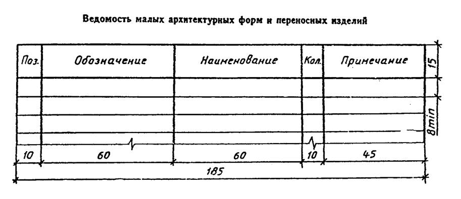а) ведомость малых архитектурных форм и переносных изделий по форме 8, пример оформления которой приведен в приложении Н;