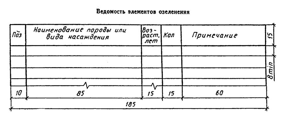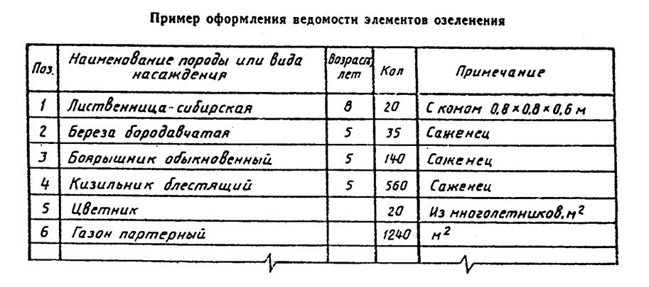 б) ведомость элементов озеленения по форме 9, пример оформления которой приведен в приложении П;