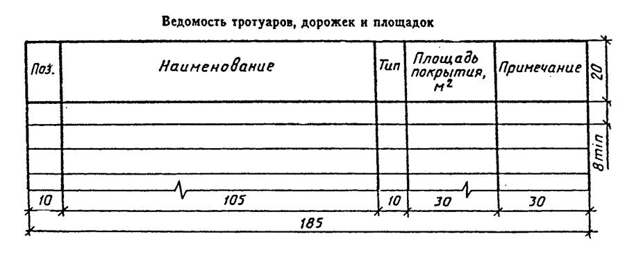 в) ведомость тротуаров, дорожек и площадок по форме 10, пример оформления которой приведен в приложении Р; (рисунок Р.1);