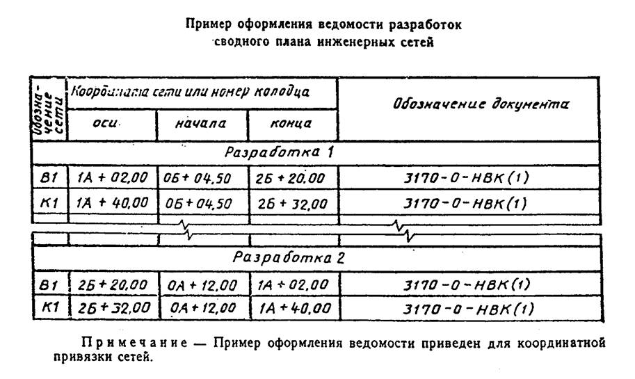 "Пример оформления ведомости разработок сводного плана инженерных сетей"