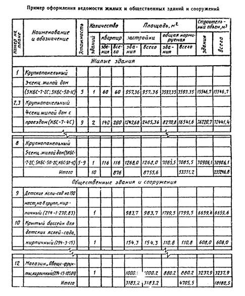 "Пример оформления ведомости жилых и общественных зданий и сооружений"