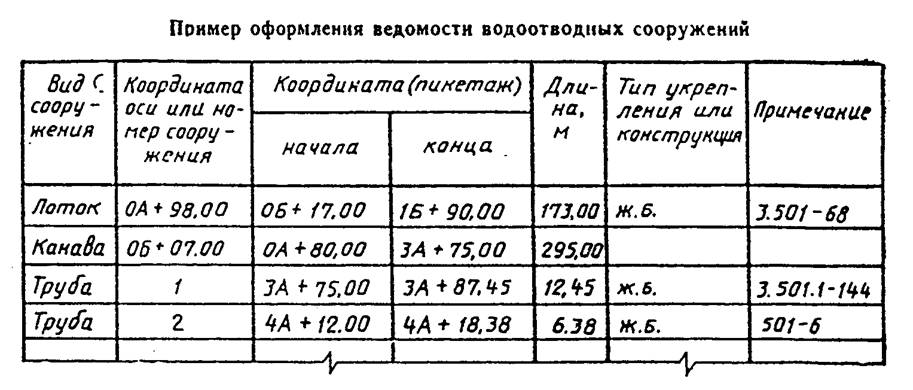 д) ведомость автомобильных дорог, подъездов и проездов по ГОСТ 21.511 (форма 1) - для жилищно-гражданских объектов, пример оформления которой приведен в приложении Р (рисунок Р.2);