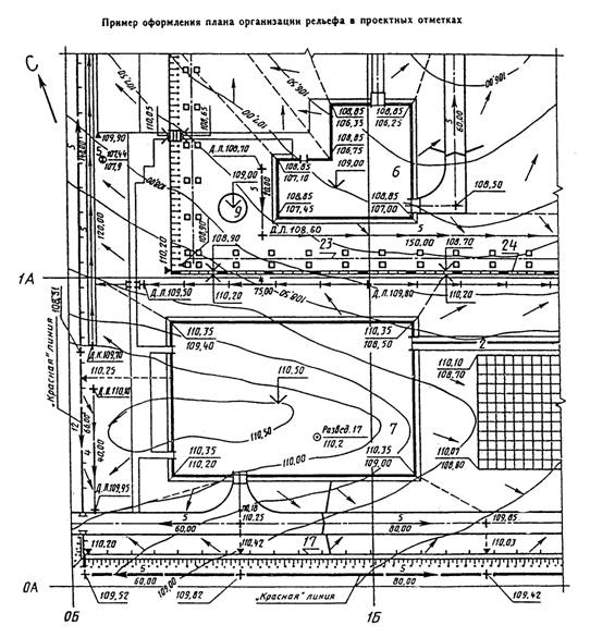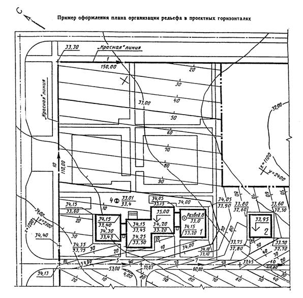 "Пример оформления плана организации рельефа в проектных горизонталях"