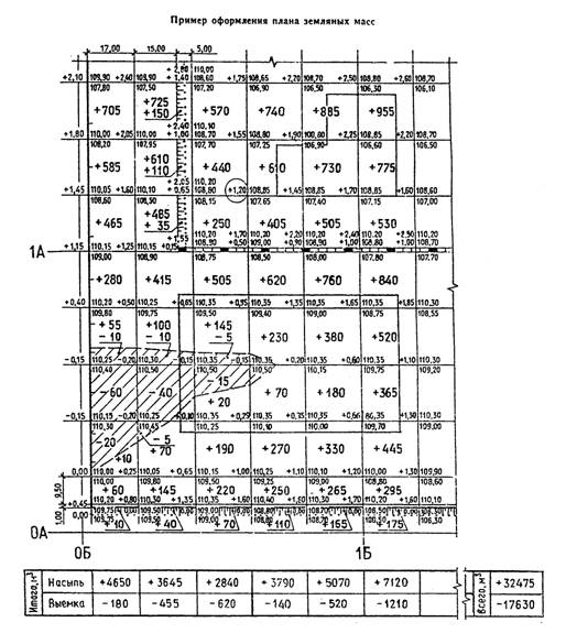 На плане удаления грунтов за проектные отметки принимают отметки низа подлежащего снятию грунта, которые при последующем выполнении плана земляных масс рассматривают как фактические отметки.