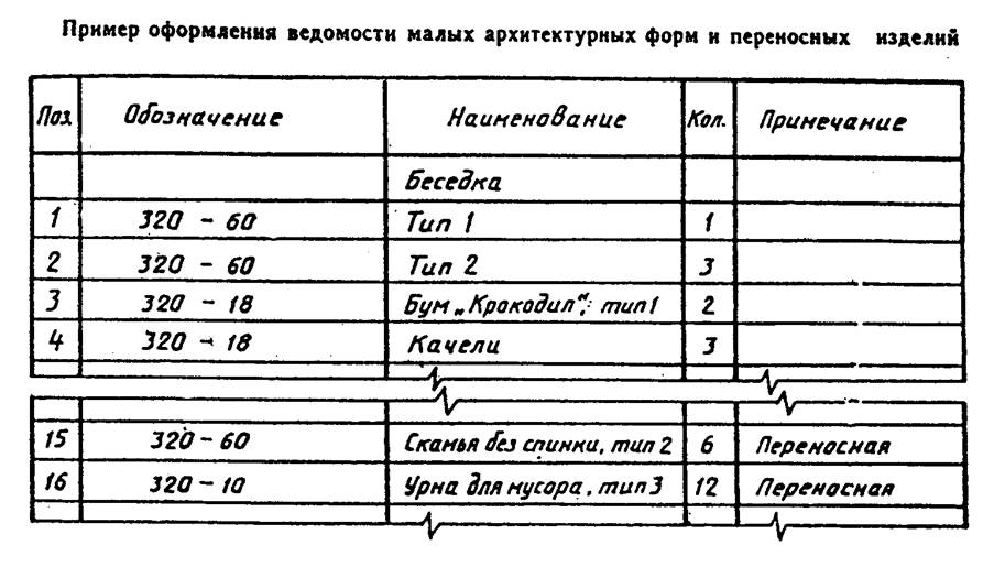 "Пример оформления ведомости малых архитектурных форм и переносных изделий"