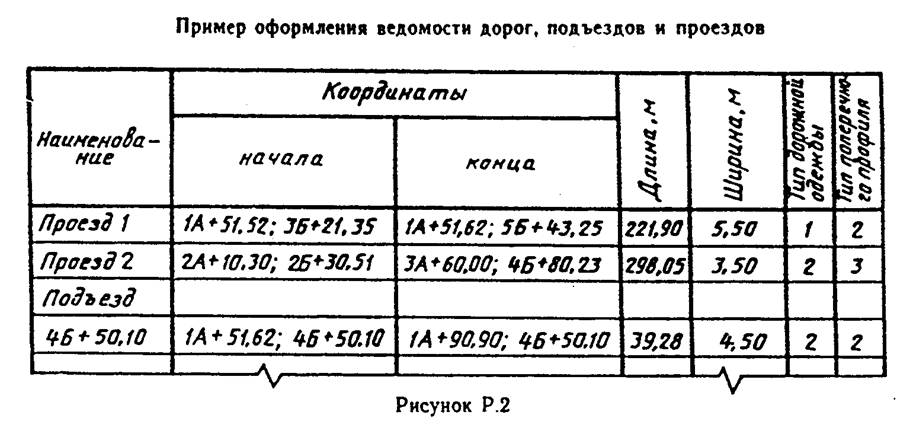 "Рис. Р.2. Пример оформления ведомости дорог, подъездов и проездов"
