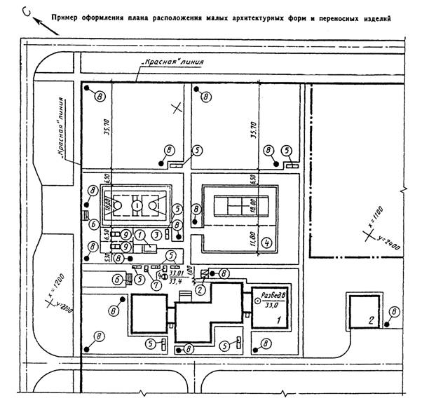 "Пример оформления плана расположения малых архитектурных форм и переносных изделий"