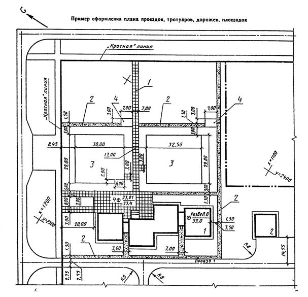 "Пример оформления плана проездов, тротуаров, дорожек, площадок"